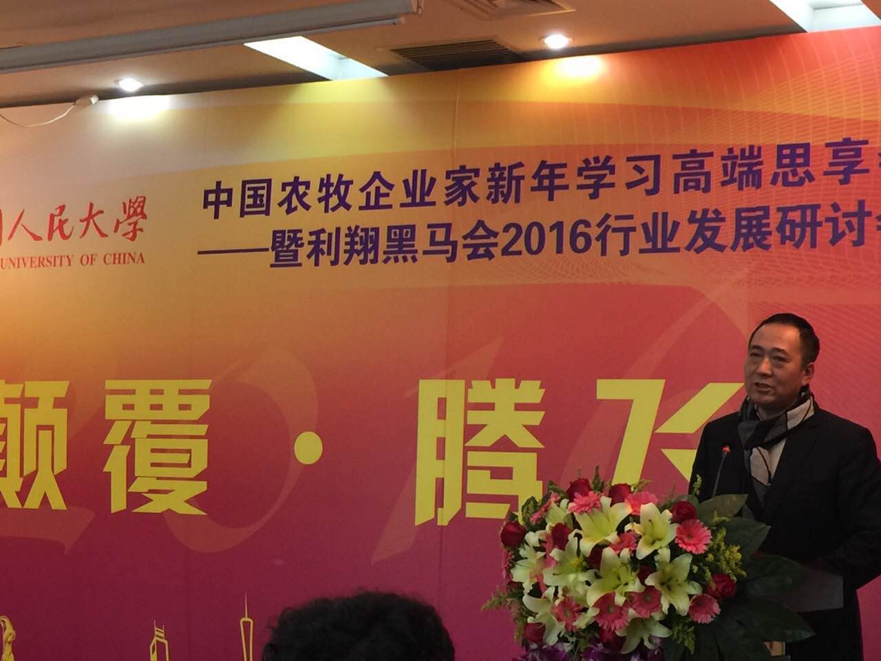2016中國農(nóng)牧企業(yè)家新年學(xué)習(xí)高端思享會 暨利翔黑馬會2016行業(yè)發(fā)展研討會勝利召開 —— 張利庠教授:跨界思維顛覆行業(yè)思維 — 世界是一個系統(tǒng)、不是一個專業(yè);消費綁架生產(chǎn)、金融決定實業(yè)、系統(tǒng)大于專業(yè);文化和心態(tài)顛覆技術(shù)和生存 — 從“取勢”到“明道”,不僅是賺錢、還要為全人類面臨的重大挑戰(zhàn)提出解決方案,從浮躁到安穩(wěn),企業(yè)家應(yīng)該為興趣、為理想、為夢想而創(chuàng)業(yè)創(chuàng)新,"明道"未來!會上和農(nóng)牧業(yè)集團(tuán)董事長方彥明先生也作了精彩分享!