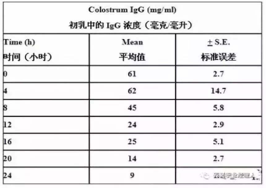 寄養(yǎng)其實對母豬和仔豬來講均是一種應(yīng)激,且寄養(yǎng)易導(dǎo)致疾病交叉感染,所以產(chǎn)房應(yīng)盡量減少寄養(yǎng),特別要嚴(yán)禁跨單元寄養(yǎng)。當(dāng)產(chǎn)后母豬泌乳量嚴(yán)重不足、產(chǎn)仔數(shù)過多、母性差、母豬體弱多病、有惡癖或甚至母豬死亡時才可考慮寄養(yǎng),寄養(yǎng)應(yīng)在仔豬出生后24小時內(nèi),并保證仔豬吃到充足初乳后進行。由表1可以看出,初乳中的IgG濃度其實到了產(chǎn)后12小時只有剛產(chǎn)完時的一半都不到。產(chǎn)后24小時幾乎只有剛產(chǎn)完時的1/7的濃度。